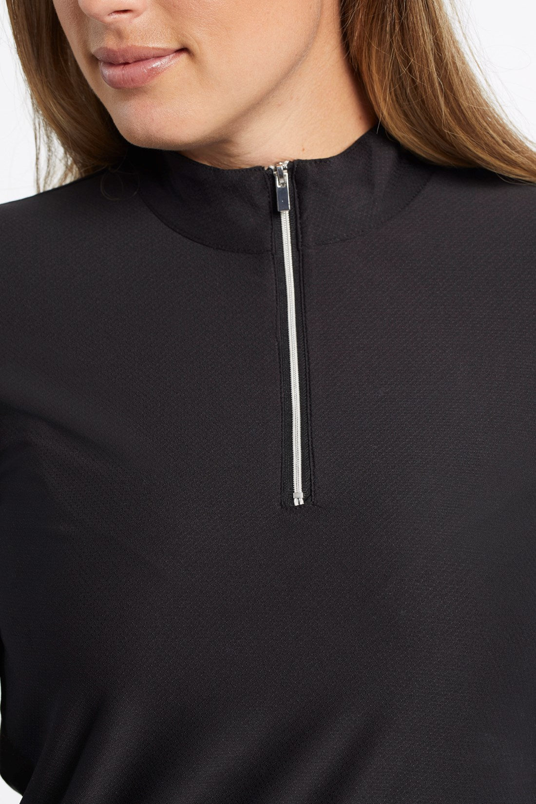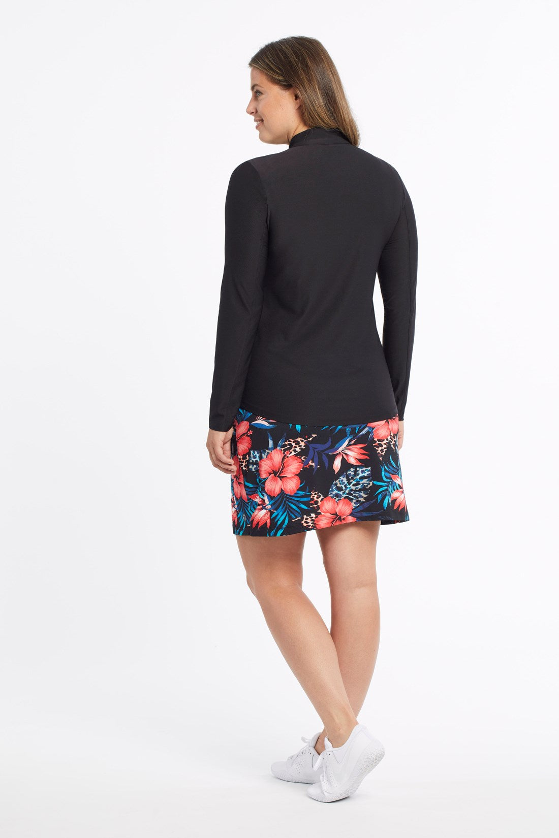 This long sleeve mock top is the perfect addition to any activewear collection. Made with our new upgraded moisture-wicking fabric, it's light weight and has antibacterial properties as well as UPF 50+ protection. This top will keep you comfortable and looking great anywhere from the golf course to the tennis court to even a day on the water.